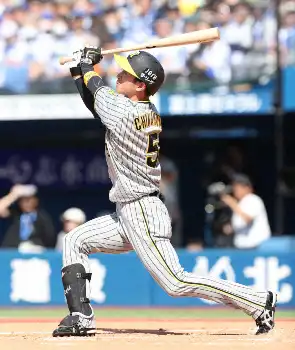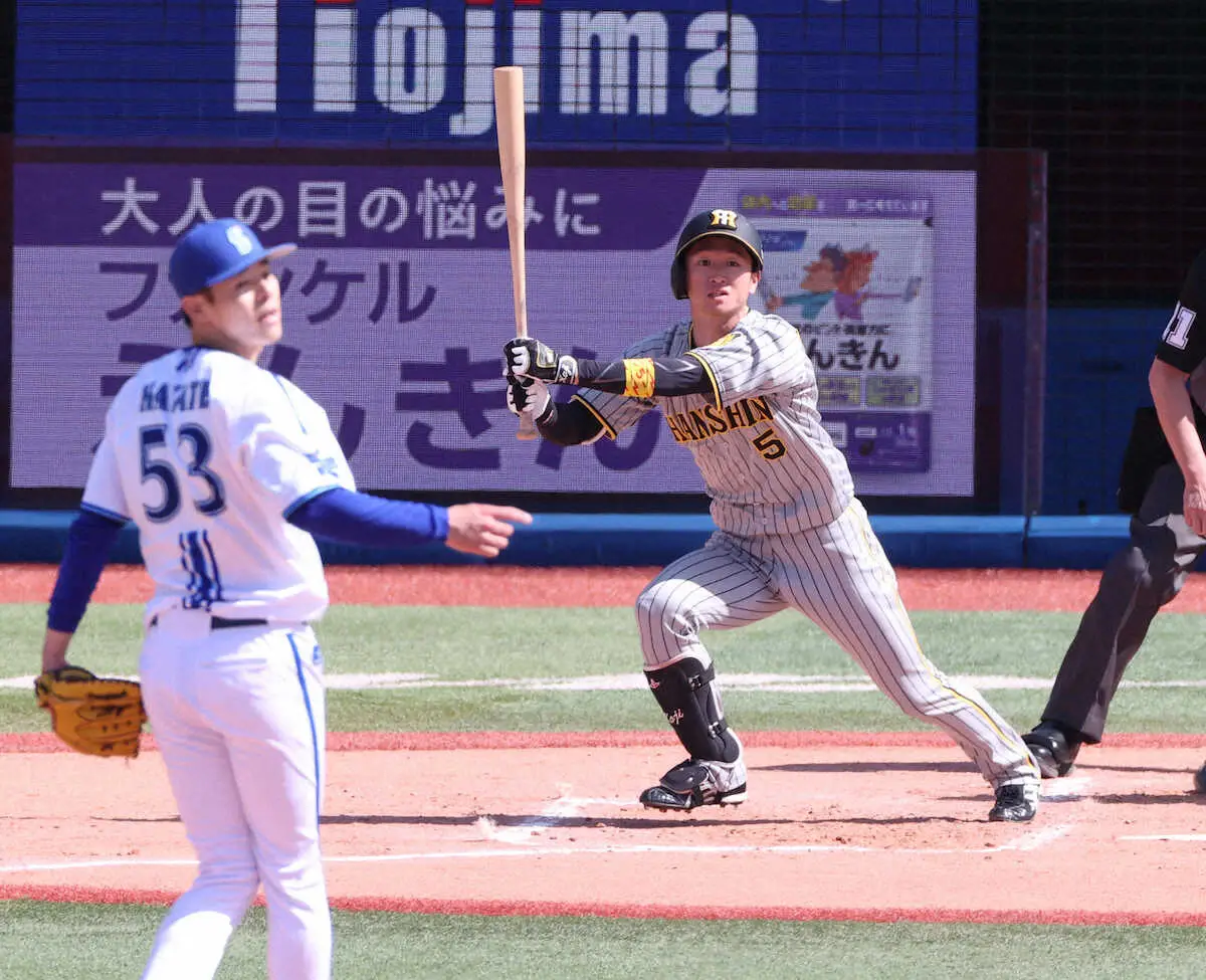 2回、1点を先制されて、なお2死一、二塁。阪神・近本の飛球は横浜スタジアムに吹く強風に流されて左翼前に落ちる2点二塁打となった。