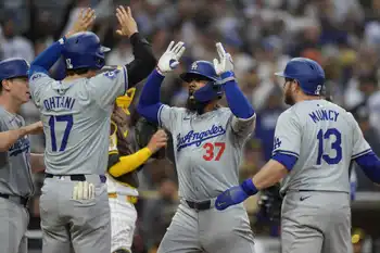 1―0の6回にドジャースがビッグイニングを演出した。1死走者なしから大谷が四球を選ぶと、パドレスは2番手モレホンを投入。モレホンが2四球にボーク、暴投で2死満塁とピンチを拡大したところで、パドレスベンチは3番手デロスサントスに継投した。ここでT・ヘルナンデスがカウント1―2から甘く入ったスライダーを完璧に捉えると左翼席へ今季11号、自身4本目の満塁弾となる一発をたたき込んだ。