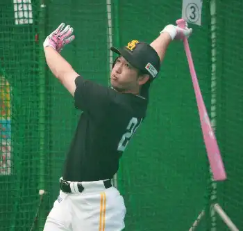 阪神の超大型リードオフマンだ!1メートル89、100キロの井上が初1番で3戦連続安打
