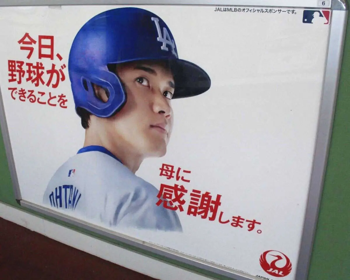 日本航空の広告で、いわて花巻空港とJR花巻駅で18日までの限定公開。「僕がカーネーションを抱え、空を飛んで会いに行っても、母は喜ばない。試合に、練習に行かなくていいの?そんな顔をするでしょう。だから、代わりに僕はホームランを打ちたい」などという大谷の言葉が書かれている。