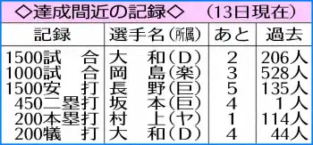 昨季の到達日は5月30日。牧(D)、万波(日)、浅村(楽)の3人同時だった。試合数は牧、浅村が45試合目、万波が49試合目。今季は本塁打が少ないと言われているが上位のペースは昨年より速い。最速10号の称号は誰の手に…。(記録課・八田 朝尊)