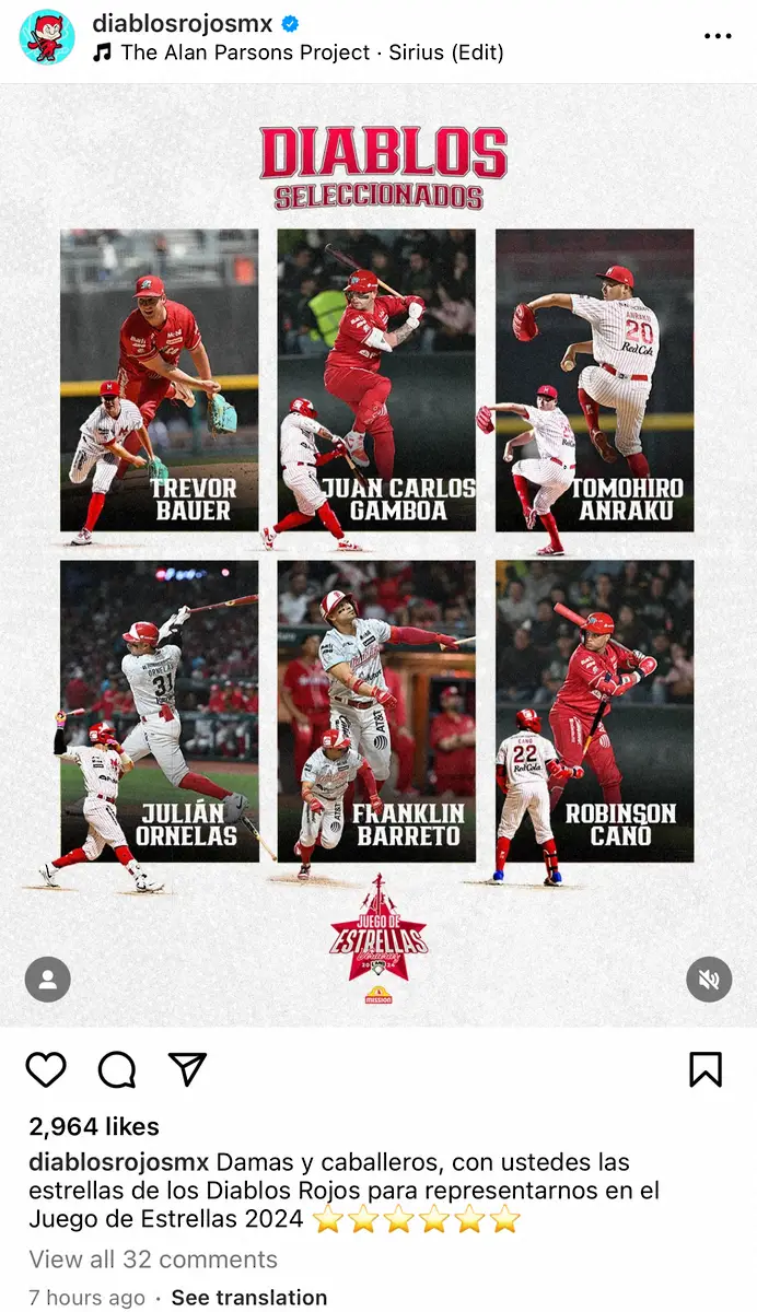 球団公式SNSでは、「紳士淑女の皆さん、2024年のオールスターゲームでプレーするレッドデビルのスターたちです」というメッセージとともに、チームから選出された安楽を含む6人の画像がアップされた。