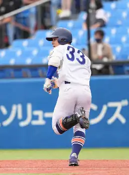 背番号33が夢見心地でベースを回った。4―0の7回無死、カウント2―1からの内角直球をフルスイングすると打球は左翼席めがけて最高の角度で飛んでいった。「越えてくれと、全力で走ったら。審判の方が手を回していて“入ったんだな”って」。15日に「7番・二塁」でリーグ戦初スタメンも3打数無安打。だが「ボクは1年、何も恐れることはない。自分のプレーをしようとファーストストライクから振っていこうと思いました」。その積極性が初回の遊撃適時内野安打、さらに7回のソロ、9回のダメ押し左前適時打につながった。