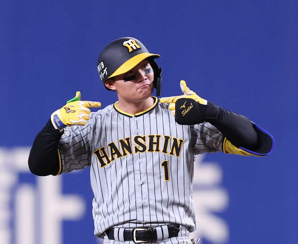 1ボールから4番手・斎藤が投じた外寄りのシュートを一振りで仕留めた打球は、左中間フェンスにワンバウンドで到達した。歓喜に沸く三塁ベンチに目をやって喜びを爆発させた直後に、代走の切り札・植田が送られてお役御免。背番号1の一打が、1死三塁から近本の決勝適時打をお膳立てした。