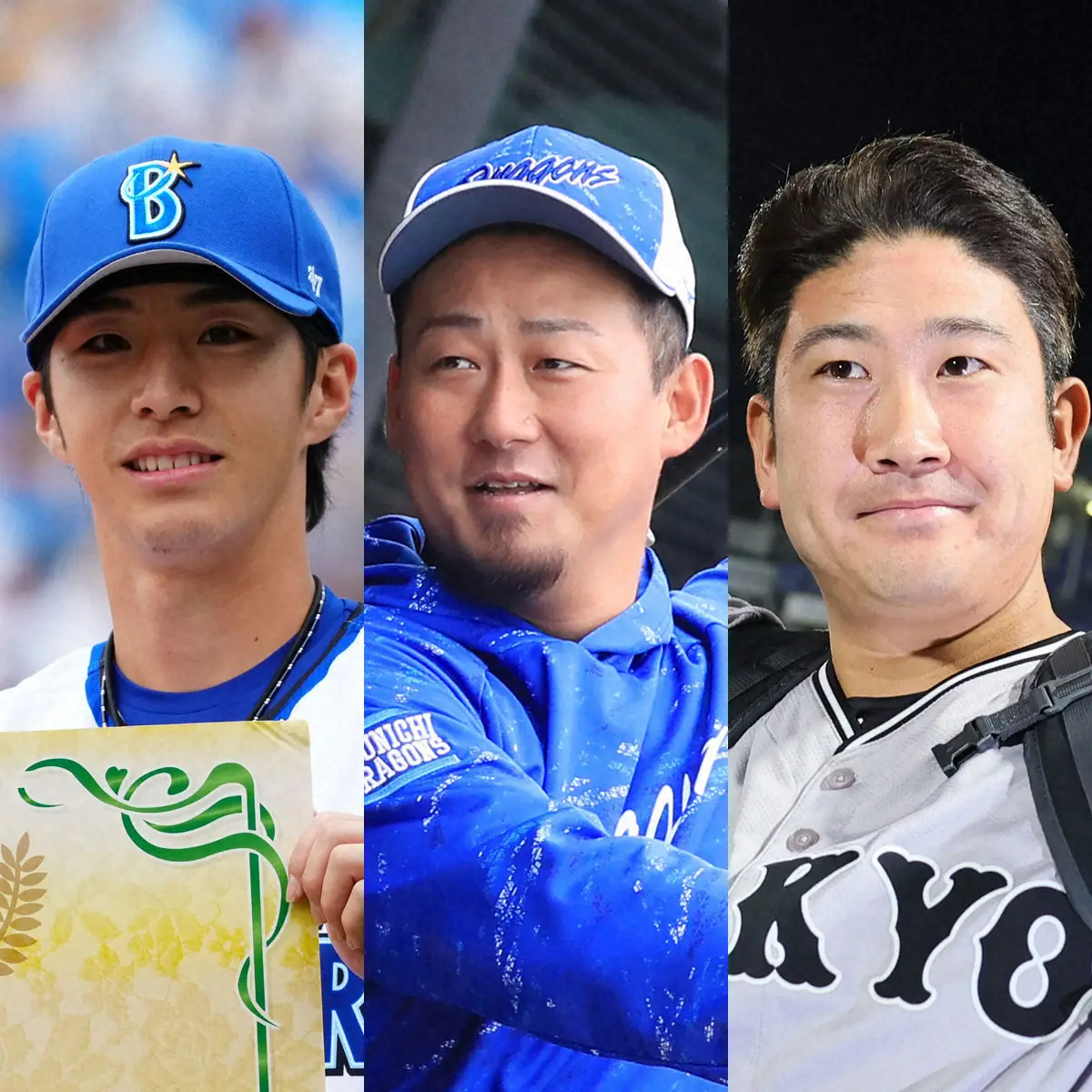 DeNA・度会隆輝(左)、中日・中田翔(中央)、巨人・菅野智之