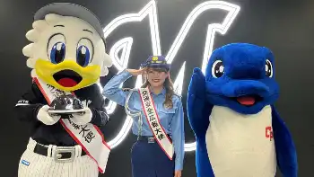 ロッテ マーくん&YUUが「自転車ヘルメット推進イベント」参加