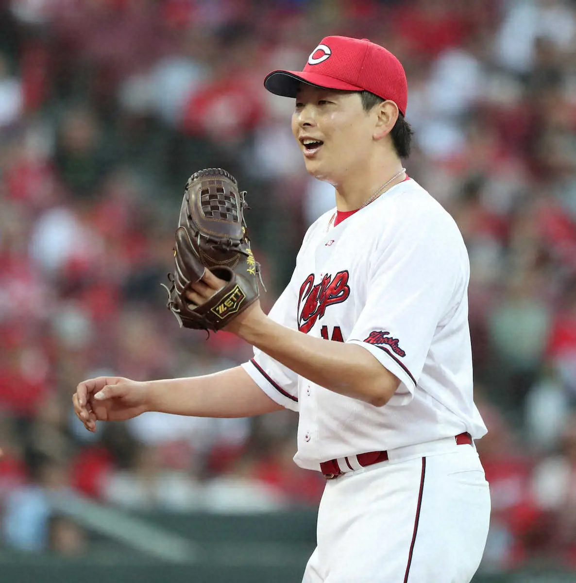 前回8日の阪神戦も初回の大山に対して内角勝負。最初は引っかけて狙い通り決まらない中で会沢が何度も要求して引っ張った。カーブでアクセントをつけ始めたのも前回から。さすがのリードだ。