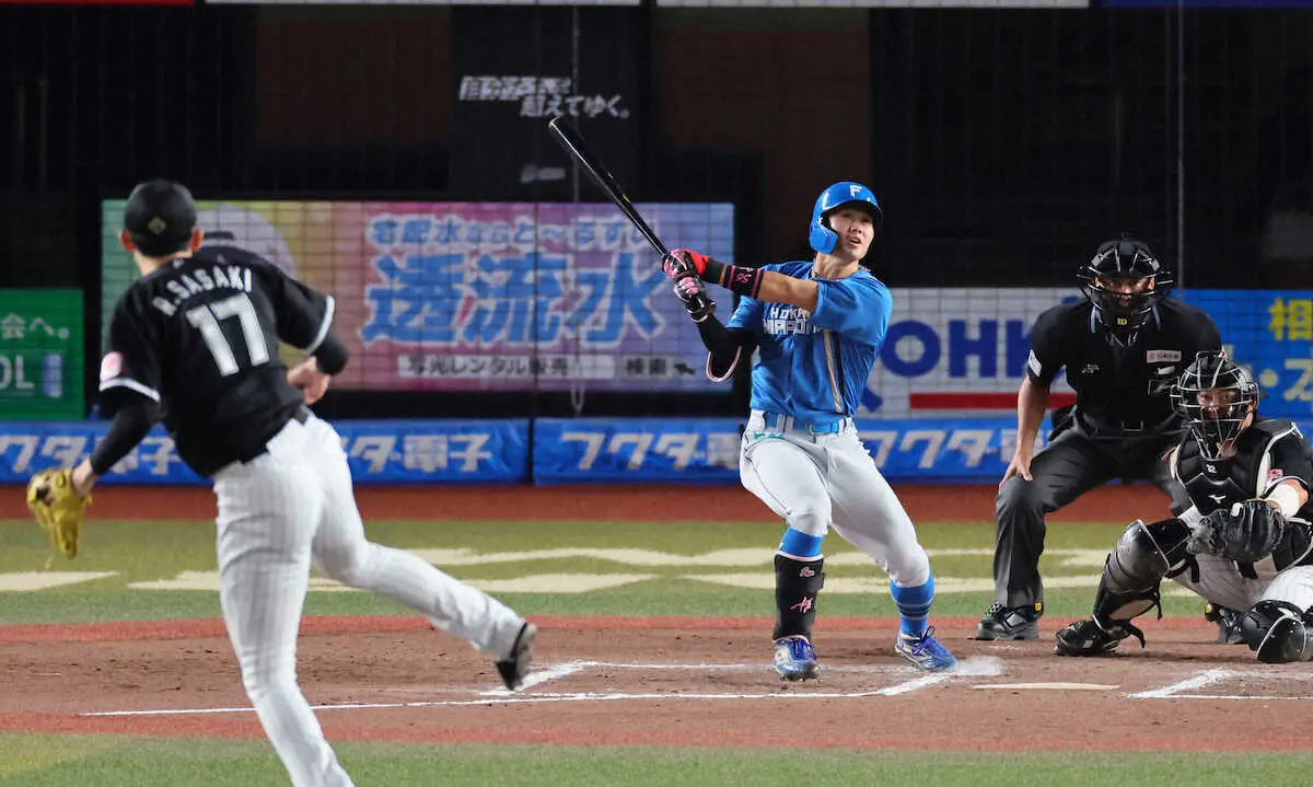 日本ハムの細川凌平内野手(22)が貴重な同点犠飛を放った。17日のロッテ戦に「5番・左翼」で先発出場し、1点を追う7回無死二、三塁で同点の左犠飛をマーク。この日は午後1時半開始のイースタン・リーグのヤクルト戦(鎌ケ谷)にも出場する「親子ゲーム」となったが、ロッテ先発の佐々木朗希投手(22)を得意とする男が、延長12回引き分けに持ち込んだ。
