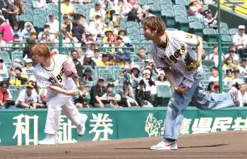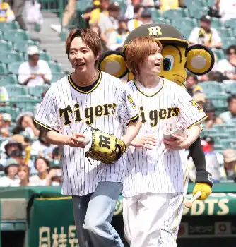 阪神「TORACOデー」のファーストピッチにTravis Japanの七五三掛、中村登場!黄色い歓声