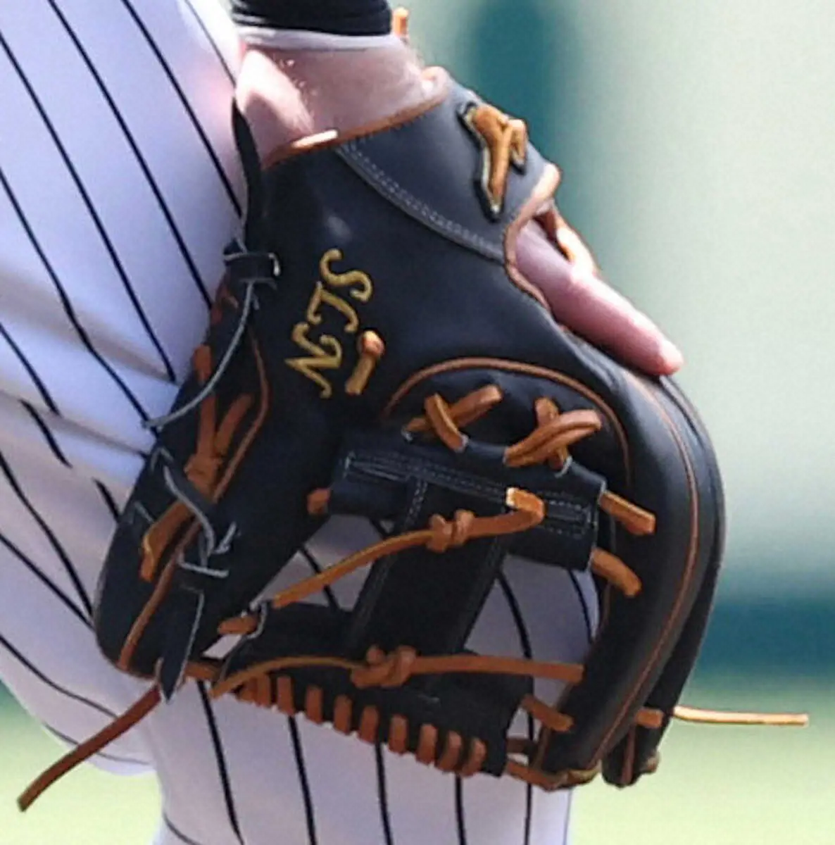 14日の中日戦(豊橋)で佐藤輝明が失策を犯し、翌15日に出場選手登録を抹消。同日、ノイジーはチームから三塁の準備をしておくように命じられた。大きな外野手用しか持参していなかったため、初めは遊撃手の小幡竜平にグラブを借りていたが、名古屋遠征から帰阪した17日に“マイグラブ”が届いたそうだ。米国で使用していたものはロゴなどの場所がNPBでは使用不可だったため新調。「SLN」=写真=の刺しゅう入りで、大事そうにしているのが印象的だ。