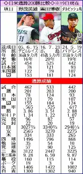 日米通算200勝比較 Photo by スポニチ 日米通算200勝3投手を比較 ダルビッシュは野茂と黒田の特徴を兼ね備える… ギャラリーで見る この記事のフォト 2024年05月21日の画像一覧 もっと見る 2024年05月21日の画像をもっと見る