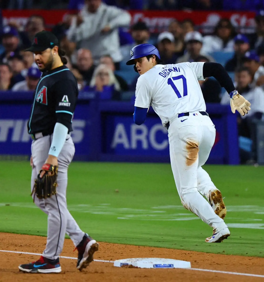 三盗の後、捕手の悪送球を誘って本塁に生還し、ロバーツ監督(右から2人目)らナインに出迎えられるドジャース・大谷(撮影・光山 貴大) Photo by スポニチ 大谷翔平 第2打席はチーム初安打となる左翼線二塁打 今季初三盗から相手… ギャラリーで見る この記事のフォト 2024年05月22日の画像一覧 もっと見る 2024年05月22日の画像をもっと見る