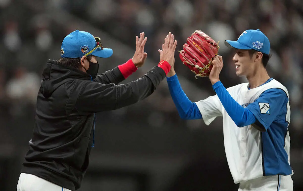プロ最長となる6回のマウンドに上がり、2死としたところで降板。被安打2、92球を投げ抜き、後続に託した。ベンチ前では新庄監督から笑顔で迎えられ、両手でハイタッチをしていた。
