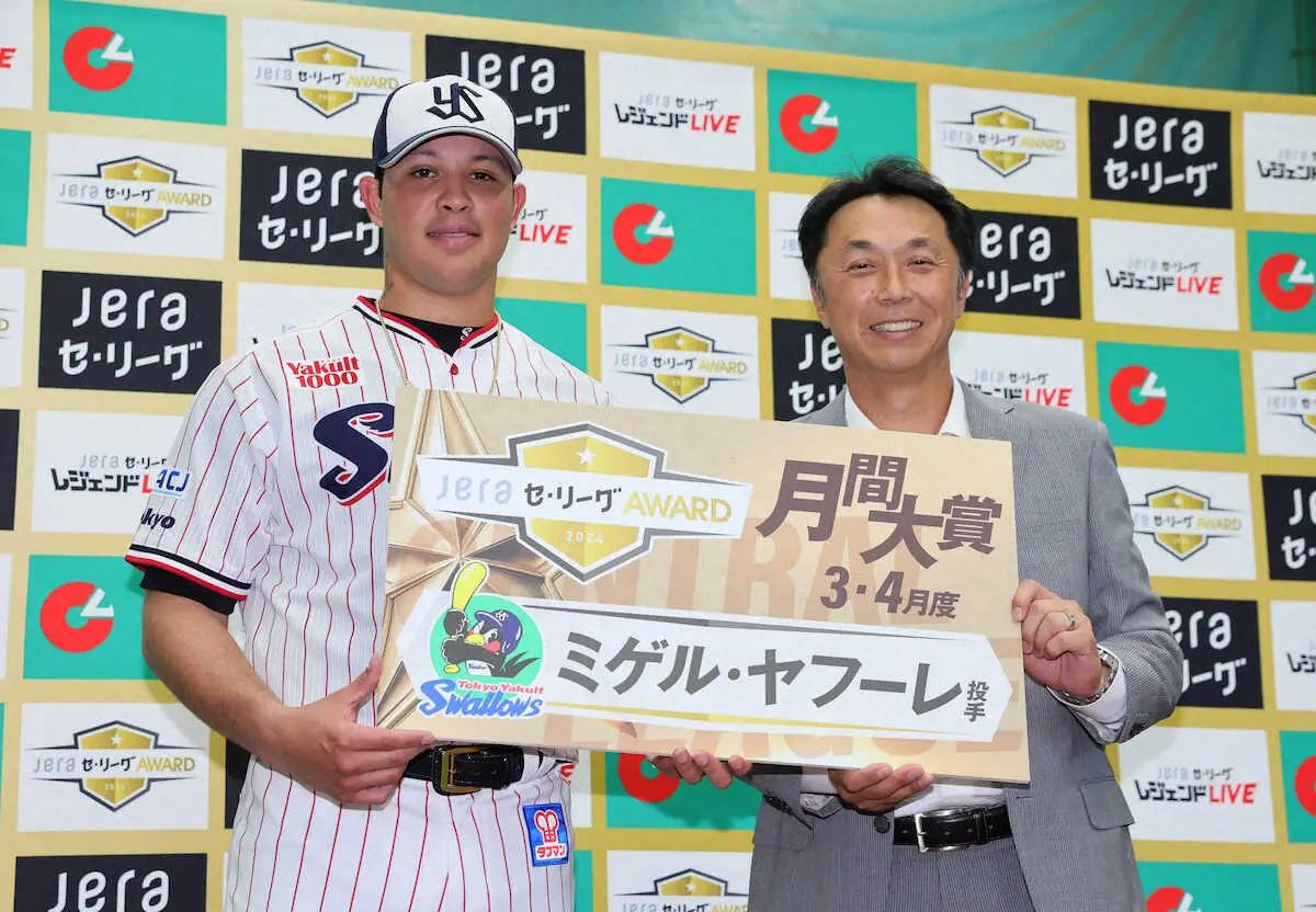 「とても光栄」JERAセ・リーグAWARD3、4月度の月間大賞の授賞式でヤクルト・ヤフーレ