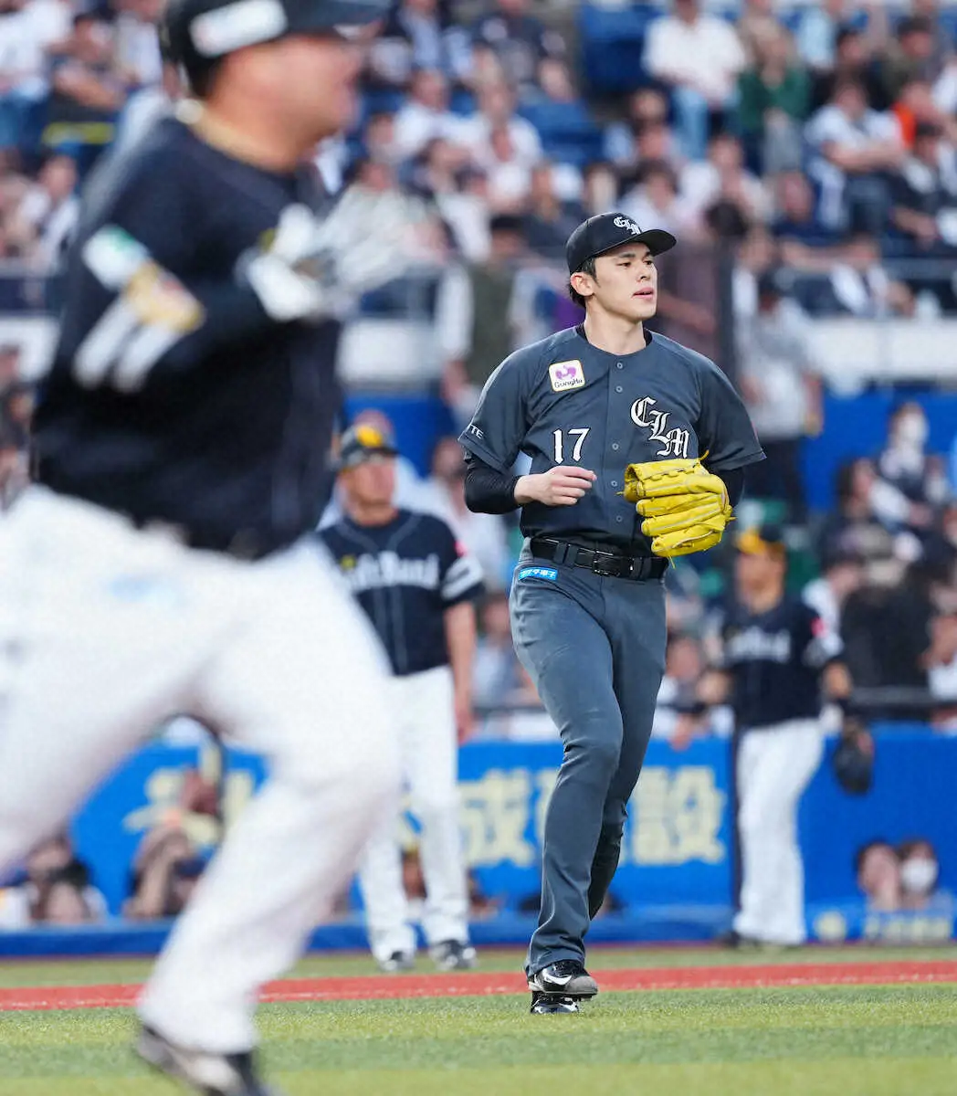 <ロ・ソ7>初回1死一塁から山川に右前打を打たれた先発の佐々木(撮影・長久保 豊)