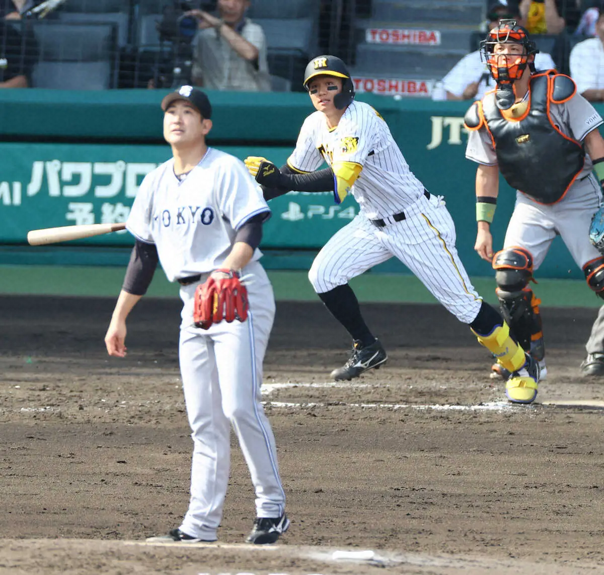 打線は24日、戸郷にノーヒットノーランをされており、この日も7回1死まで無安打。不穏な空気を2年目の若虎が打破すると、4番大山の左前打、渡辺の右前先制適時打が続けて生まれ、甲子園のボルテージは最高潮に達した。