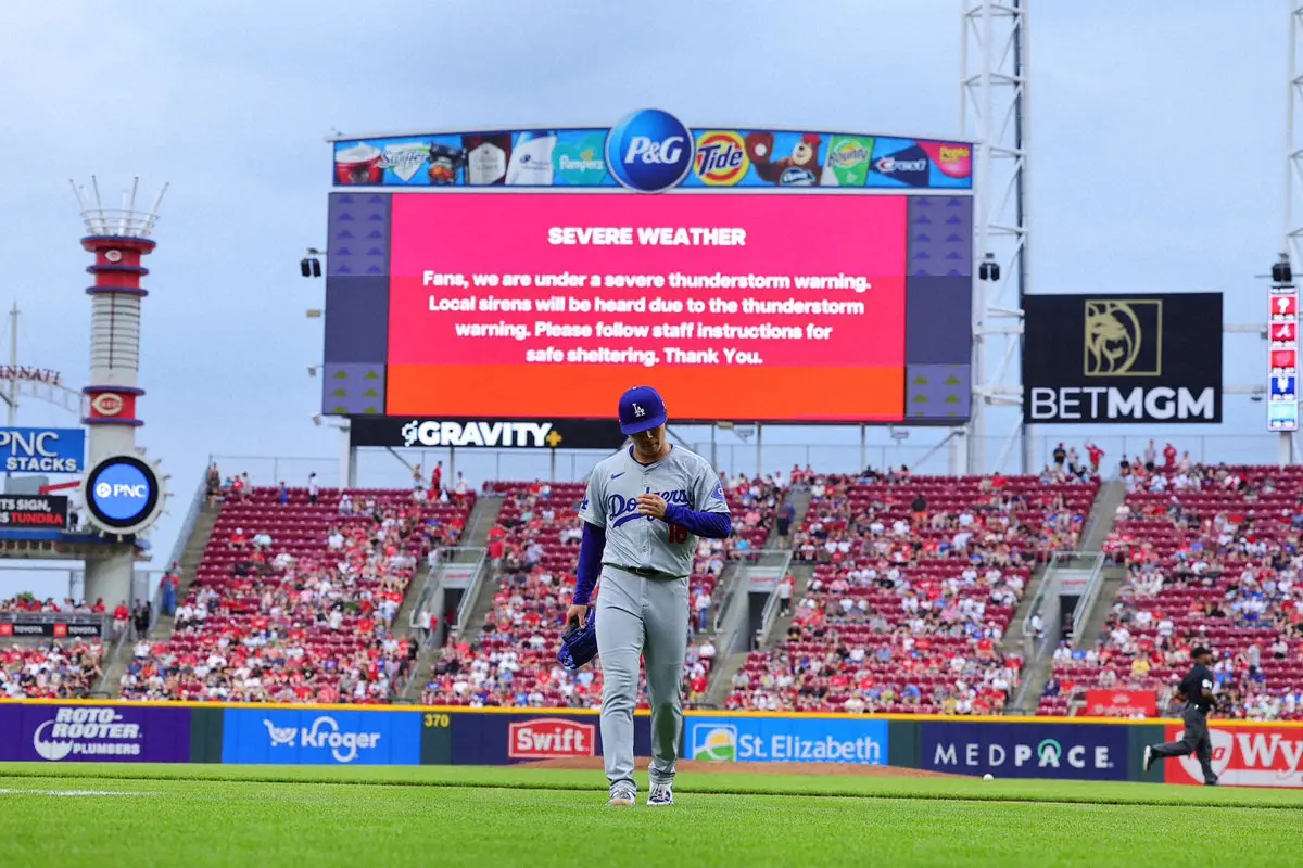 <レッズ・ドジャース>試合再開を待つドジャース・大谷(撮影・光山 貴大) Photo by スポニチ ドジャース-レッズの一戦 雷雨警報で1時間9分の中断経て試合再開 5回終… ギャラリーで見る この記事のフォト 2024年05月27日の画像一覧 もっと見る 2024年05月27日の画像をもっと見る