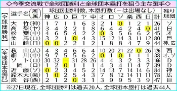 28日からセ、パ交流戦が始まる。今回は貴重な他リーグとの対戦で全球団勝利、全球団本塁打を狙う選手に注目する。