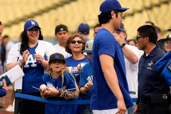 試合前、大谷からボールをもらった女の子。その後もうれしそうに…