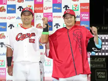 <広・オ>ヒーローインタビューを終え笑顔でポーズを決める末包(左)と床田(撮影・奥 調) Photo by スポニチ 広島・末包 先制V撃で交流戦7年ぶり白星発進 “命の恩人”龍馬先輩のメッ… ギャラリーで見る この記事のフォト 2024年05月29日の画像一覧 もっと見る 2024年05月29日の画像をもっと見る