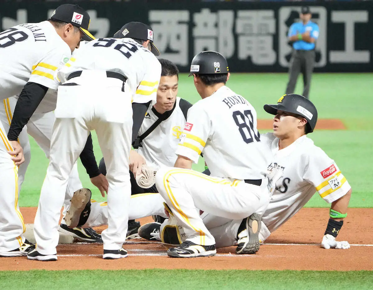 ソフトバンク・柳田 痛めたのは右の太もも裏 「何とも言えない」アイシングや電気治療を受ける