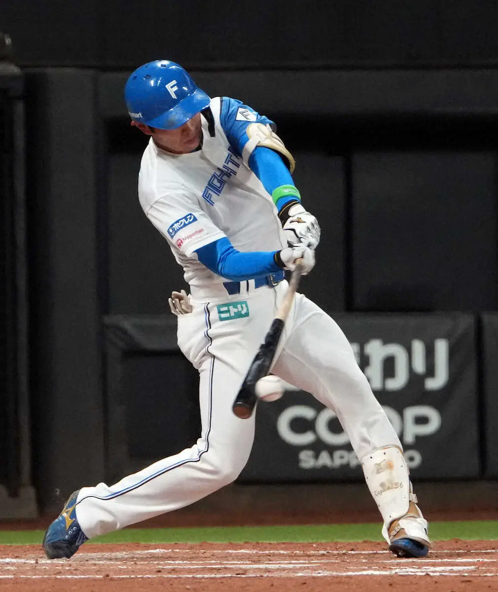 この日に初昇格し、すぐに「7番・左翼」で出場。0―1の2回2死一塁の第1打席で、DeNA・東からバットを折りながらも右前へ運ぶと、スタメンに抜擢した新庄監督は両手を上げて喜んだ。