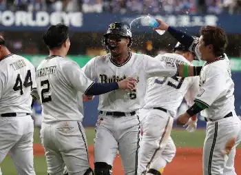 <オ・中>9回1死三塁、サヨナラ犠飛を放ったオリックス・宗(中央)は歓喜のウォーターシャワーを浴びる (撮影・奥 調) Photo by スポニチ オリ・宗が決めたサヨナラ!「オリ髭デー」にオリ髭2位選出男のV犠飛で劇勝… ギャラリーで見る この記事のフォト 2024年06月01日の画像一覧 もっと見る 2024年06月01日の画像をもっと見る