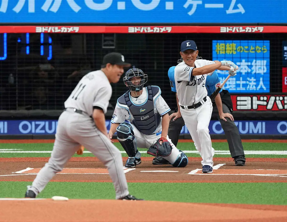 <西・巨>試合前、OB1打席対決で辻発彦氏を打ち取り喜ぶ斎藤雅樹氏(撮影・沢田 明徳) Photo by スポニチ 西武OB辻発彦氏VS巨人OB斎藤雅樹氏 1打席対決 日本シリーズは6打数4安打… ギャラリーで見る この記事のフォト 2024年06月01日の画像一覧 もっと見る 2024年06月01日の画像をもっと見る