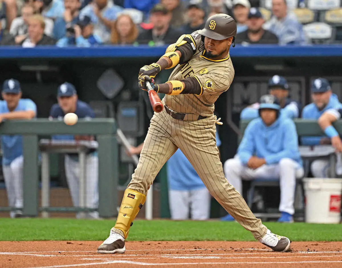 パドレスのルイス・アラエス内野手(27)が5月31日(日本時間6月1日)、敵地でのロイヤルズ戦で今季5度目となる4安打の固め打ち。チームの逆転勝利に貢献し、打率を・342まで上昇させた。