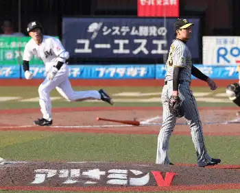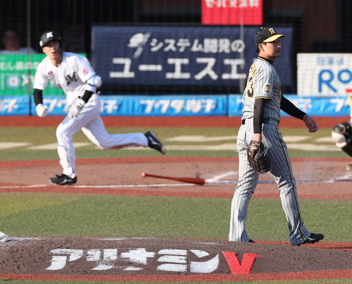 9回に渡辺の左犠飛で勝ち越しに成功し、最後と思われた1イニングを岩崎に託した。1死から代打・中村奨が放った中堅へのライナーを近本がグラブに当てながら後逸し(記録は二塁打)1死二塁とされるも佐藤を空振り三振。続く友杉も追い込み“あと1球”までこぎつけていた。だが、フルカウントから投じた直球を捉えられ前進守備シフトを敷いていた左翼の頭を越える適時二塁打で同点。4試合連続で9回に追いついたロッテの執念に屈する形で試合は振り出しに戻った。