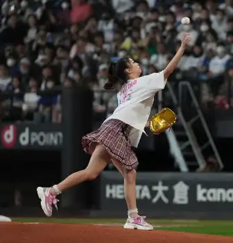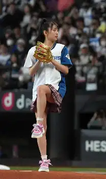 アイドルグループ「モーニング娘。'24」の牧野真莉愛(23)がファーストピッチに登場。豪快なノーバウンド投球でエスコンフィールドをどよめかせた。