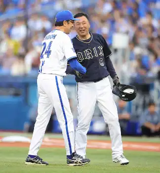 レジェンドOB対決 大洋(現DeNA)OBの遠藤氏がオリックスOBの松永氏を三ゴロに