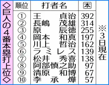 巨人・岡本和 ミスター超え球団最年少4番200号あと「3」