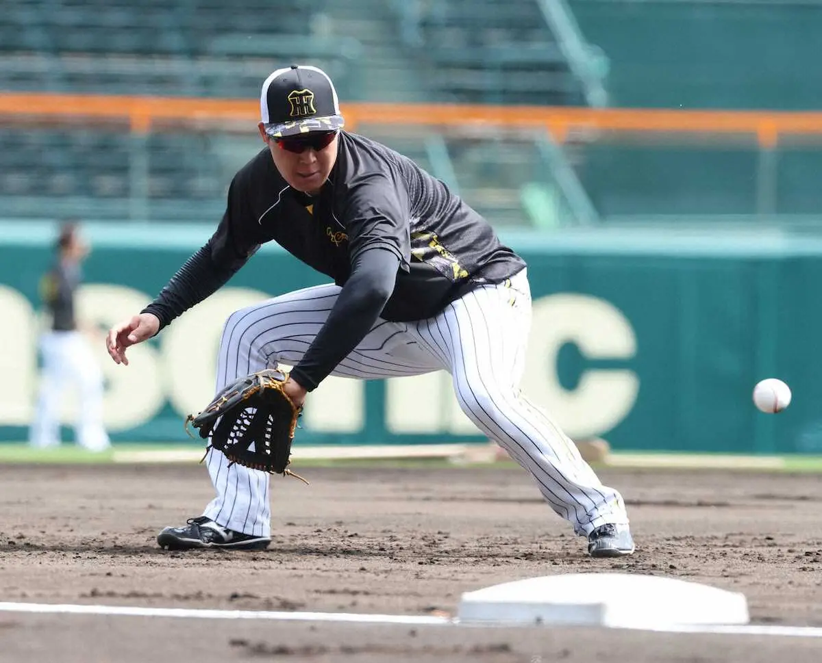 阪神・大山悠輔内野手(29)が4日、楽天戦の試合前練習で別メニュー調整を行った。外野芝でのウオーミングアップ中に、平田ヘッドコーチ、水口打撃コーチと相次いで会談を行い、キャッチボールを終えると三塁でノックを受けた。
