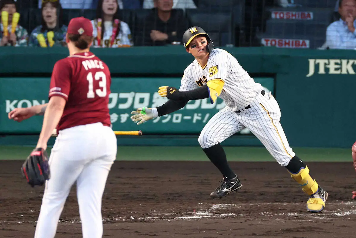 0―0で迎えた4回。1番・中野がチーム初安打となる右翼への三塁打で出塁すると、1死から打席に入った森下が、楽天・ポンセのカーブをはじき返し打球は左翼フェンス直撃の三塁打となった。