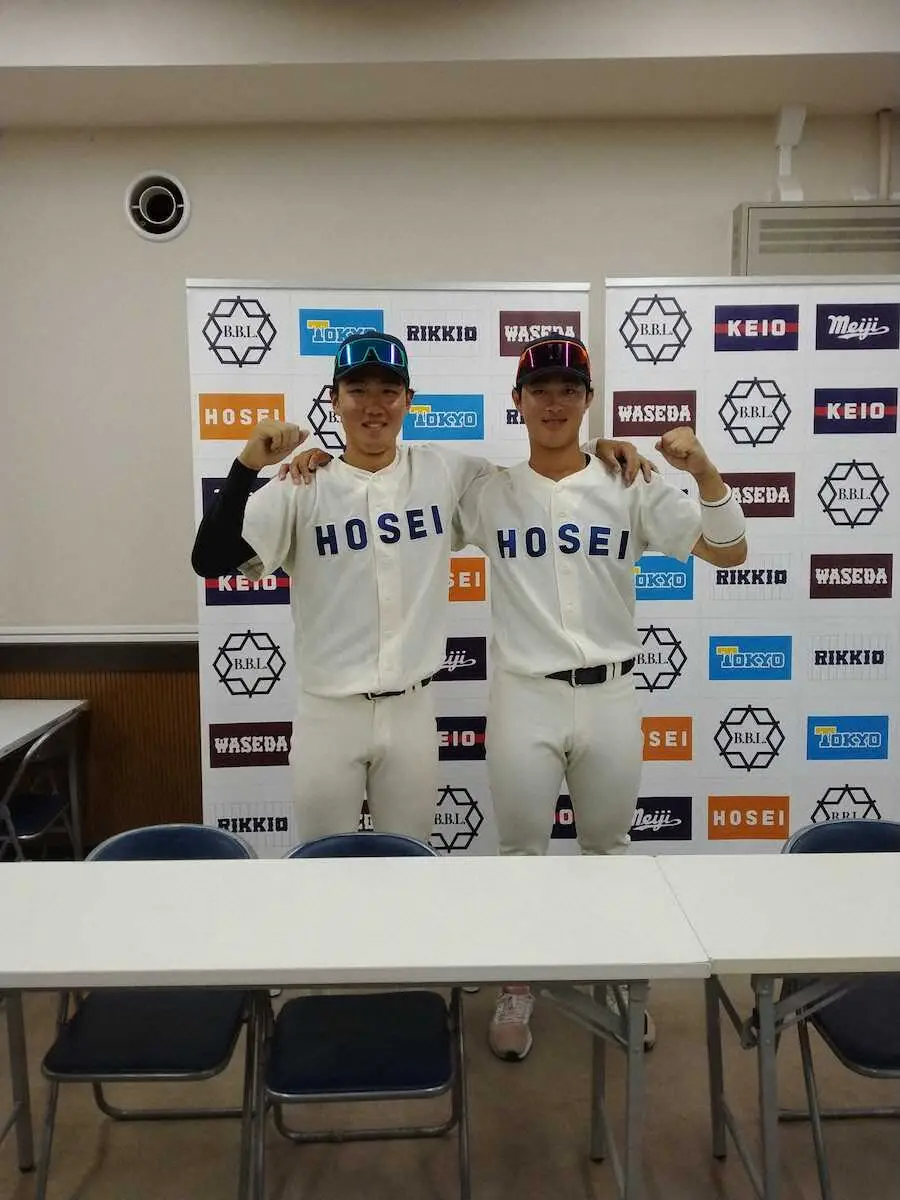 先制適時打の小川(左)と決勝打の高田の法大1年生コンビ