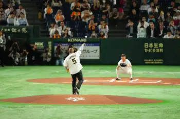 巨人時代につけた背番号5のユニホームで登場。2年間ともにプレーした長野が捕手を務めた。ワンバウンド投球になったが、「すばらしい気持ちでいっぱい。ストライクを投げることはできなかったけれど、久々に東京ドームに戻ってくることができたことを非常にうれしく思います」と笑みを浮かべた。