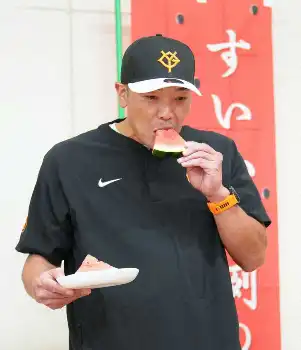 巨人・阿部監督「富里すいか」ほおばり「甘い。みずみずしい!」