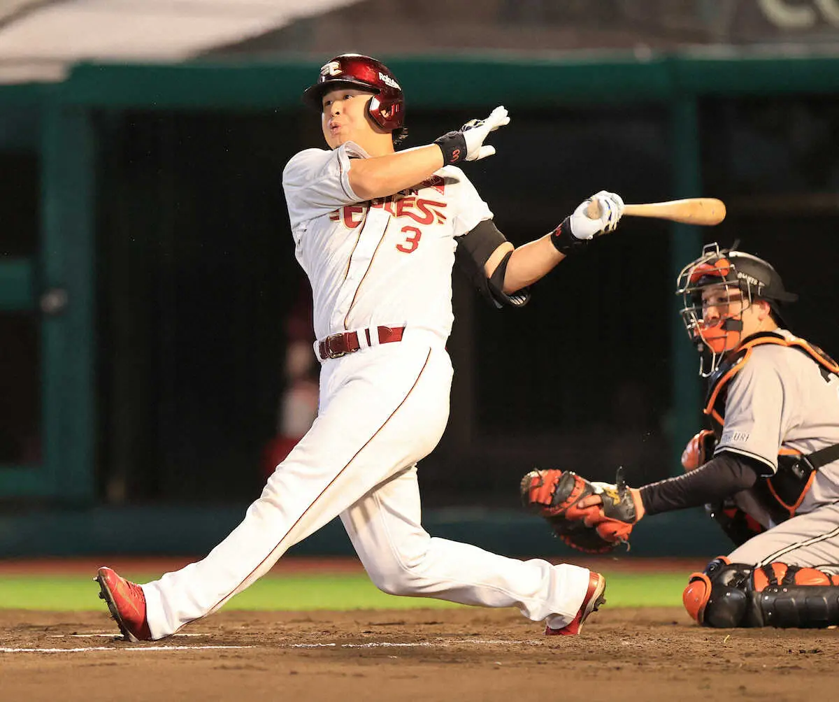 極度の不振にあえぐ楽天・浅村が1カ月ぶりの一発を放った。4点を追う8回無死一塁で西舘の151キロ直球を捉えて左翼へ反撃の5号2ラン。「自分のベストのスイングをしようと思った。一本出て良かった」。