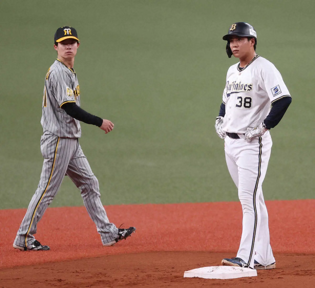 先頭・来田の左飛を阪神・豊田が落球し、続く西野の右前打で無死一、二塁。広岡がフェンス手前まで飛ばす中飛を放ったが、二塁走者・来田の判断が遅れて三塁にタッチアップできなかった。