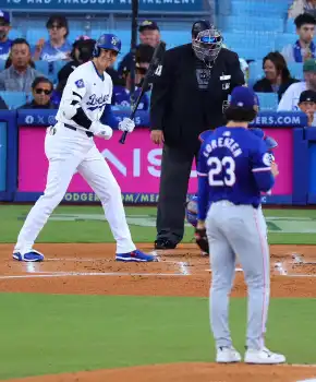 この日のドジャースは当初先発予定だった山本由伸の登板日が変更となり、ブルペンデー。初回に先発したグローブが2点を失う苦しい立ち上がりとなった。レンジャーズの先発はメジャー通算43勝を挙げ、大谷とエンゼルス時代に同僚だった右腕ロレンゼン。打席に入る際は右腕にあいさつをして打席に入った。初回1死走者なしの場面で、大谷は1ボールからの外角低めに沈むチェンジアップを引っかけさせられて二ゴロに倒れた。