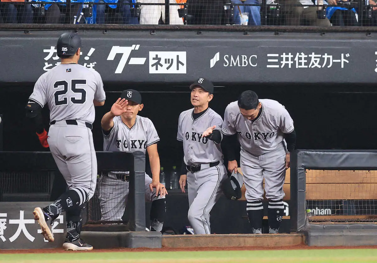 <日・巨>バルドナードらナインを出迎える阿部監督(中央) (撮影・西川祐介) Photo by スポニチ 巨人・阿部監督「打ったのは本人ですからね」 坂本に続いて岡本和にもア… ギャラリーで見る この記事のフォト 2024年06月15日の画像一覧 もっと見る 2024年06月15日の画像をもっと見る