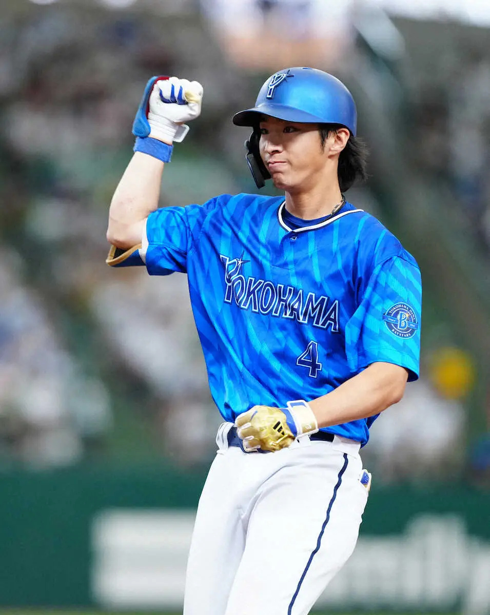 一塁ベース上で手を叩き、何度も何度もうなずいた。無理もない。初回の第1打席は152キロ直球を左飛。プロ入り後、150キロ超えの直球をヒットにしたのは、これが初めてだった。三浦監督は「あそこで結果を出す。明らかに2軍に行く前と雰囲気が違う」と称えた。