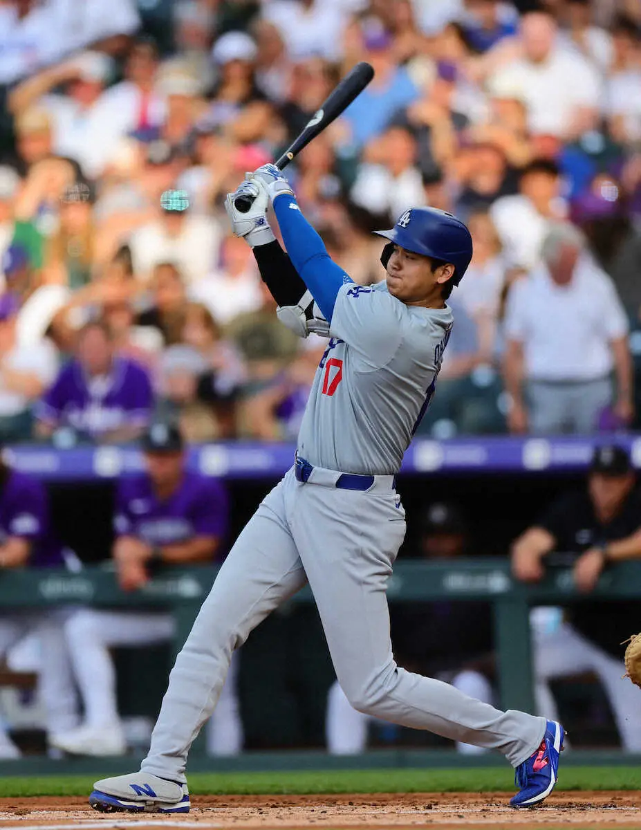 <ロッキーズ・ドジャース>6回、20号ソロを放つ大谷(撮影・光山 貴大) Photo by スポニチ 日本選手初!大谷翔平4年連続20本塁打 圧巻の今季メジャー最長145m特大… ギャラリーで見る この記事のフォト 2024年06月19日の画像一覧 もっと見る 2024年06月19日の画像をもっと見る