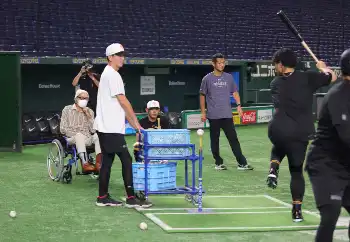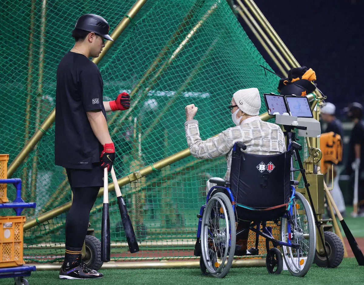 打撃指導を受けた岡本和は「今もだいぶ良くなってるから、と言ってくださいました。今日も声をかけながらやってくれてありがたいなと思います」と感謝を口にした。