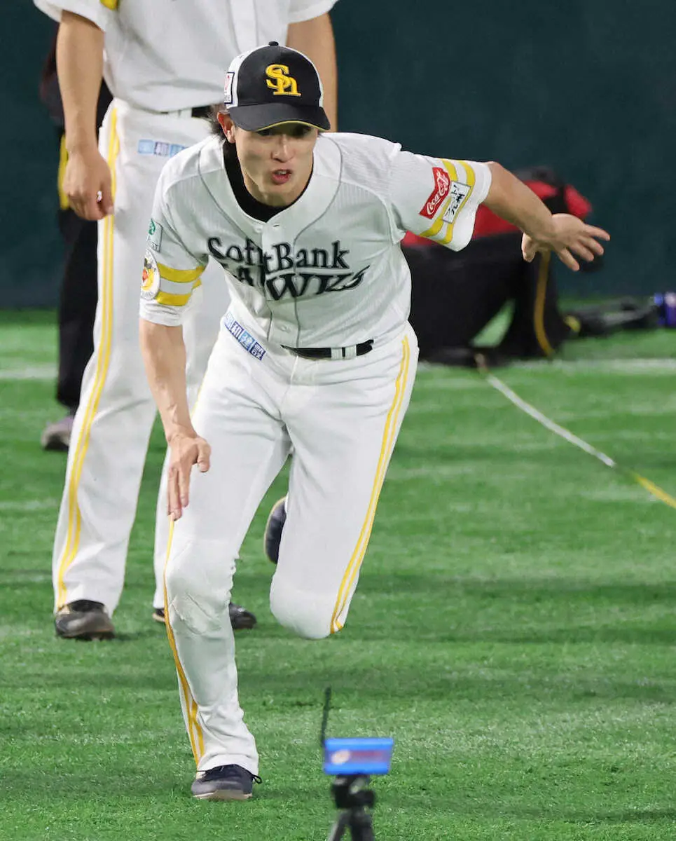 プロ野球は21日、セ・パ両リーグ内の対戦が再開する。パ・リーグ首位のソフトバンクは9ゲーム差で2位のロッテと対戦。20日はみずほペイペイドームで全体練習を行い、周東佑京内野手(28)が“鬼脚”でチームの首位快走に貢献することを誓った。まだまだリードを広げるべく、盗塁のペースを上げて突っ走る。
