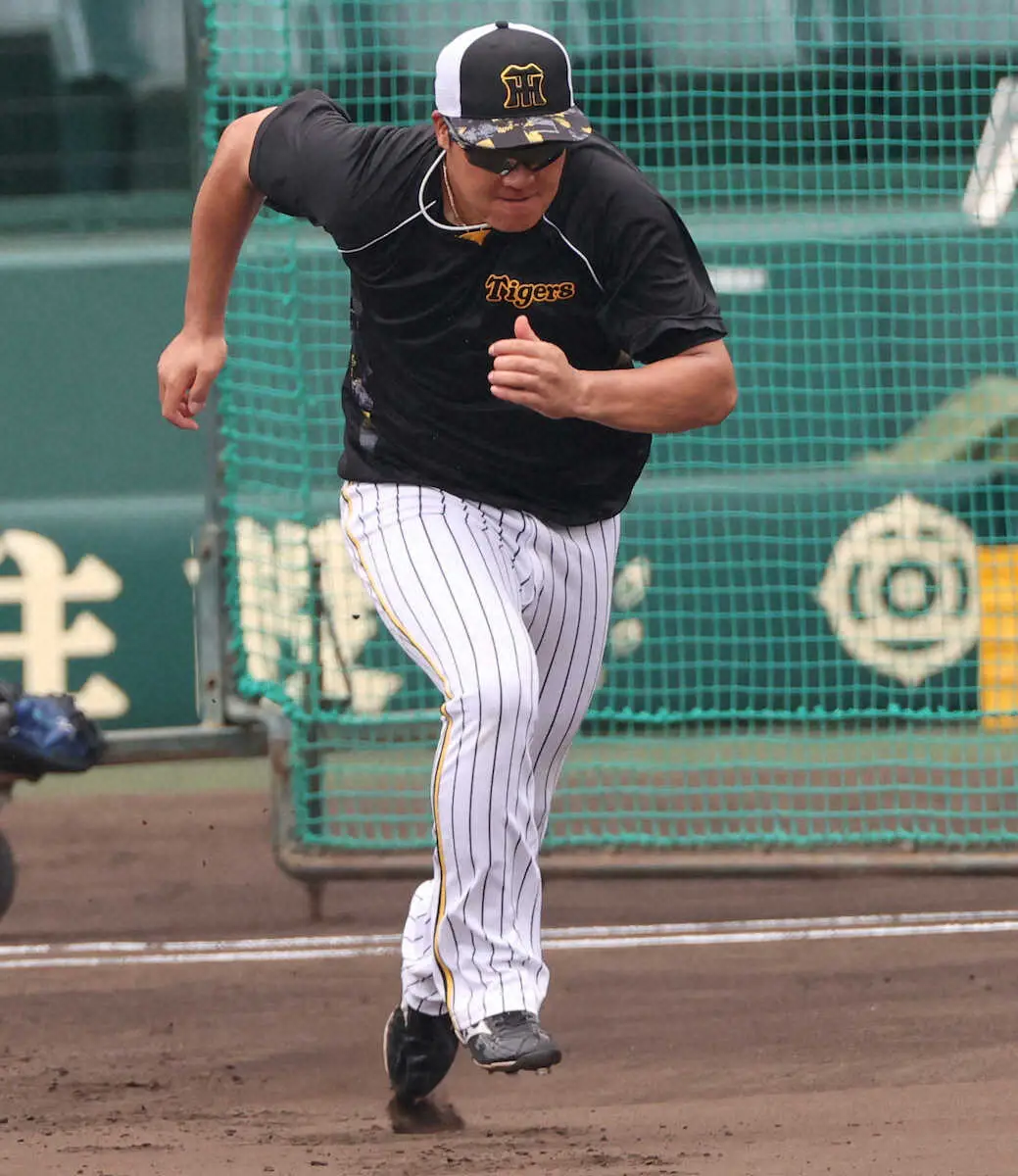 塁間をダッシュする阪神・大山(撮影・北條 貴史)