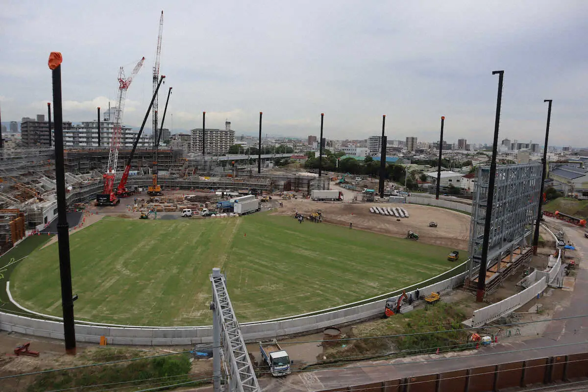 阪神が、来年3月の開業を予定して兵庫県尼崎市に建設中の新ファーム施設「ゼロカーボンベースボールパーク」メイン球場の芝を“甲子園仕様”にし、一年中、緑の状態を維持する方針であることが明らかになった。すでに今月21日から「張り芝」と呼ばれる作業を開始。阪神園芸・松井悠一氏(46)は「冬芝は6月ぐらいに死ぬので、夏芝を元気にさせないといけない。その切り替えをうまくさせるために、少し早めに張り芝をしている」と説明した。外野部分に厚みのある芝のロールを敷き、まずは夏芝を活着させる。