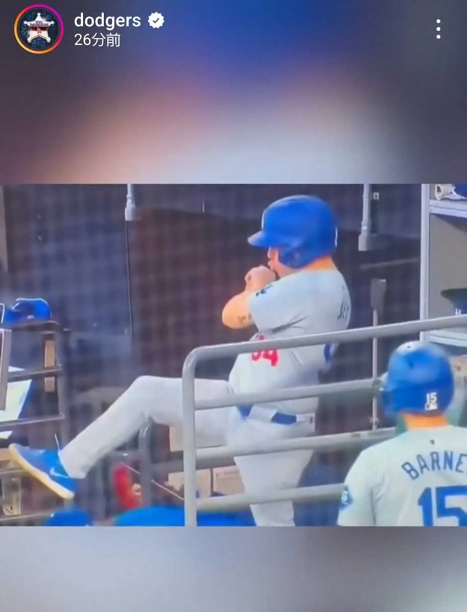 バットボーイが大谷の危機を救った!! (ドジャースの公式インスタグラムより)