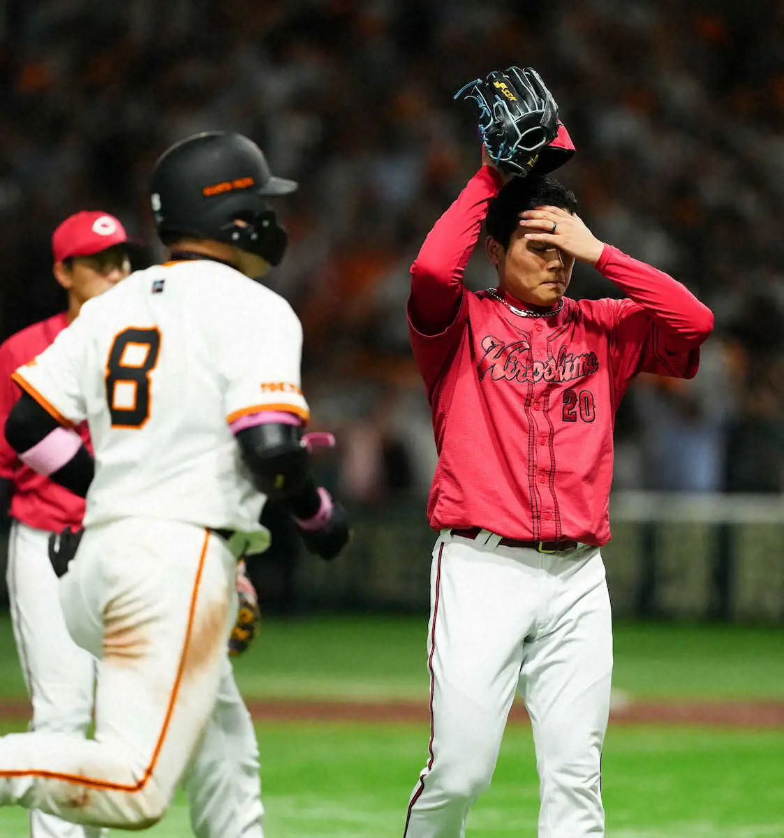 広島は9回2死三塁から相手の暴投で追いついたものの、延長10回に登板した栗林が1死から丸にサヨナラ弾を浴び、万事休した。